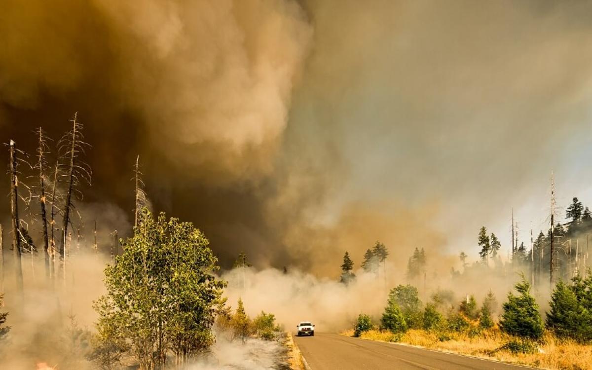 Wildfires have been raging in the western United States, as a result of recent high temperatures and severe drought which are also influenced by climate change. These conditions dry out the vegetation, which in combination with forest management practices, left large volumes of dry fuel on the ground. This has been ignited by dry lightning strikes, while wind and storms have further increased the intensity and the spread of wildfires.