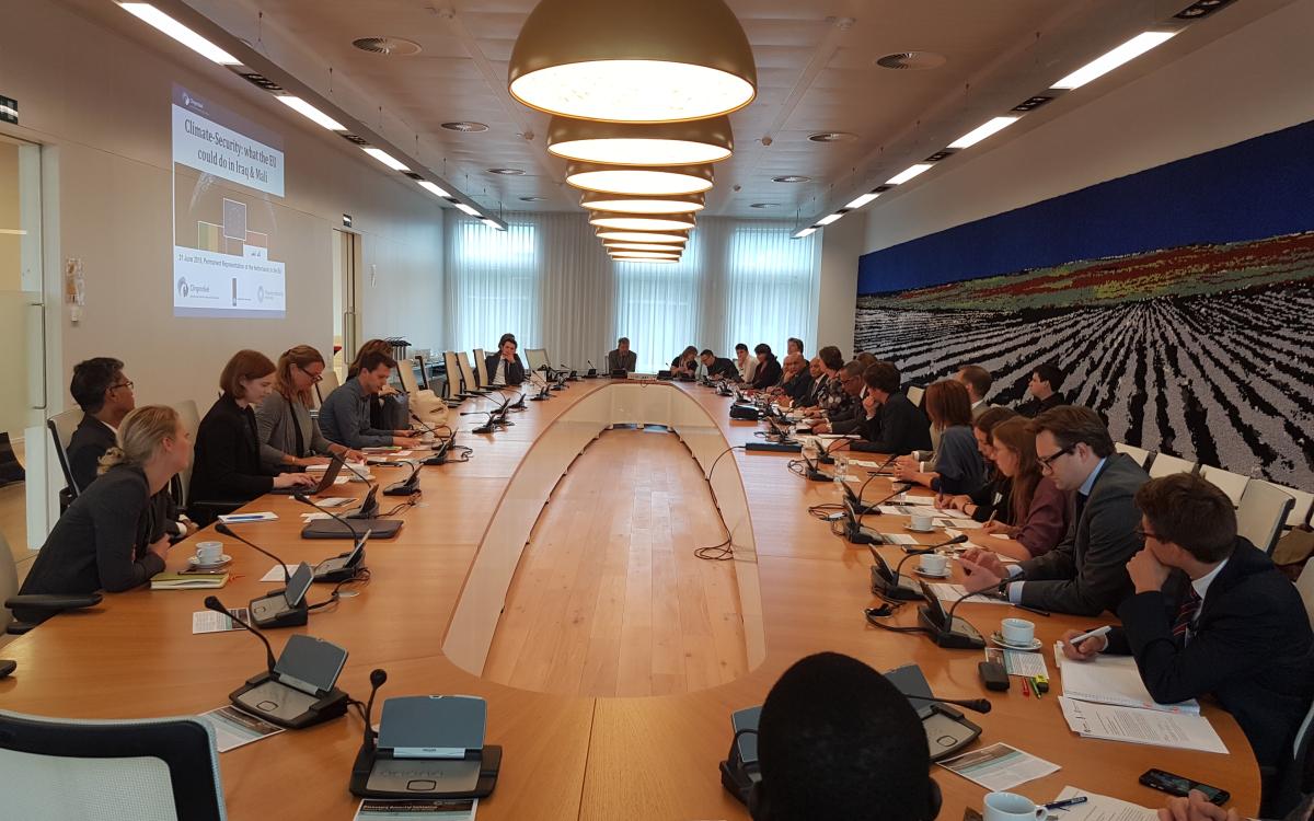 On the eve of the high level event - Climate, Peace and Security: The Time for Action hosted by the EU’s foreign policy chief Federica Mogherini, the Planetary Security Initiative hosted an informal meeting for PSC Ambassadors at the Permanent Representation of the Netherlands to the EU to exchange views on how climate change affects the security situation in Iraq and Mali and what this means for EU risk assessments, missions and policies.